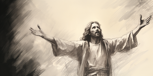 a hand sketched drawing of Jesus performing a miracle. --ar 2:1