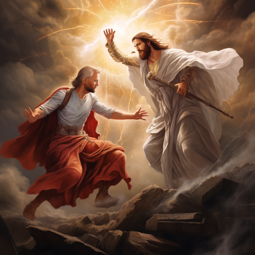 Jesus Christ watching a Latin American boy, the Latin American boy is returning from college, the Latin American boy appears to be between 20 and 30 years old, 4k detail, realistic, Hyperrealistic, digital art, masterpiece painting, ultra detailed, rich vibrant colour --ar 9:16