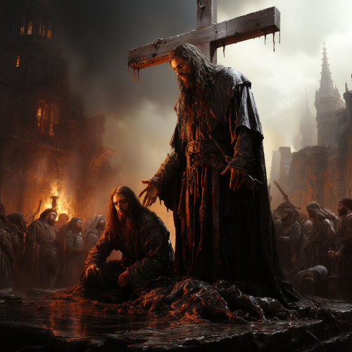 Jesus Christ on the cross, 90s style Dark Fantasy Anime Movie, DVD screengrab --v 6.0