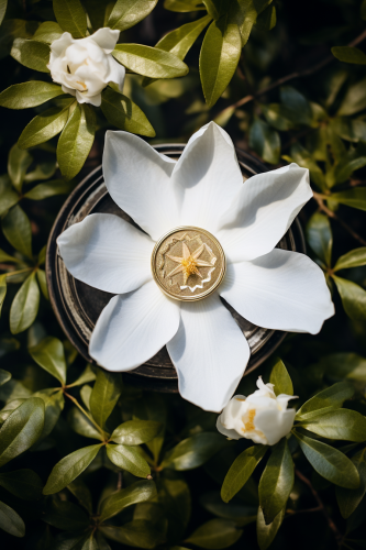 holy communion symbol on magnolia flowers --ar 2:3 --style raw --v 5.2