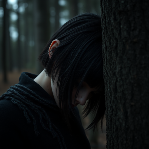Japanese Animation Cartoon Art Style, Very Attractive 24 year old Zombie Goth Girl Emo Sad Expression, Kawaii Black Cat on her Lap looking at her, Halloween Theme, Black purple Orange green , --ar 5:7 --niji 6