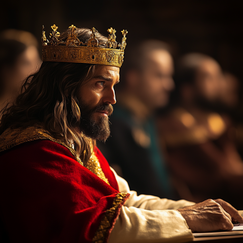 Jesus unwrapping a box of coal of Christmas morning with God laughing at Jesus, sad Jesus, a crowd of atheist protesters outside with signs that say "there is no dog" --v 6.0 --s 250