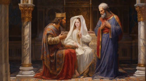Mary and Joseph in ancient Palestine, young and pregnant girl, old and tired husband, crowds of people, searching and tired