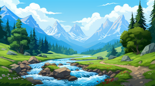 lonely mountain, tropical landscape around, D&D art style --no river