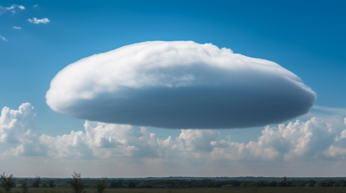 A large, oval-shaped cloud gently floating in a bright pale blue sky. The cloud is soft and bright white, with no cast shadows or other clouds nearby. Photorealistic, highly detailed, captured with a Canon EOS 5D Mark IV, using an f/2.8 lens, 50mm focal length, sharp focus, with natural lighting and vibrant colors. --v 5.0 --ar 16:9