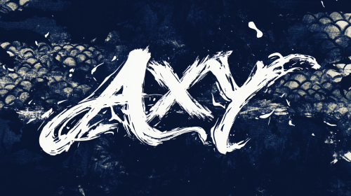 Logo for "AXY"with prominent white calligraphy text, strong and sophisticated, on a deep navy background. The design conveys strength and elegance with modern Japanese aesthetics. Below, integrate elements like stylized dragon scales or abstract cloud patterns to enhance the themes of power and grace. High-definition, sharp focus, refined typography, fluid digital brushwork, contemporary Japanese design, crisp contrasts, minimalist composition, subtle gradient lighting, clean vector lines --ar 16:9 --v 6.1