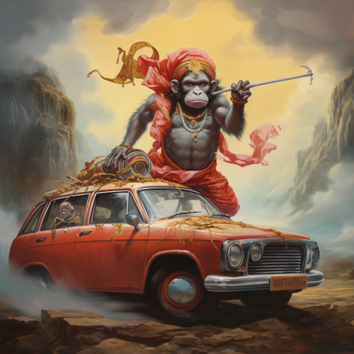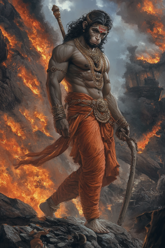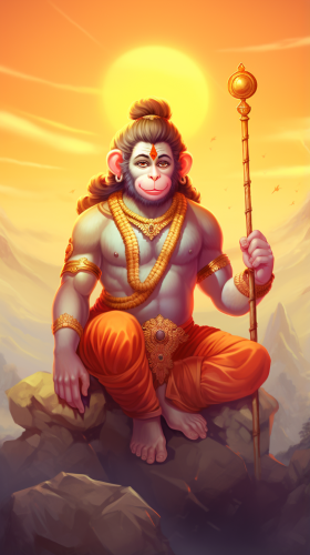 Illustration of Lord Hanuman on abstract background for Hanuman Jayanti festival of India and Happy Dussehra celebration background with Hindi Text Jai hanuman --ar 9:16