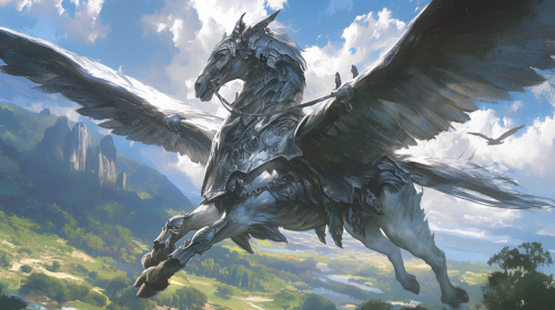 a flying horse in the cloads realistic, I can't believe how beautiful this is, Intense character designs, ken sugimori, ultra charadesigned, brushwork mastery, 32K, absurd res, dynamic pose, strong shapes --ar 16:9 --niji 6 --style raw --s 750