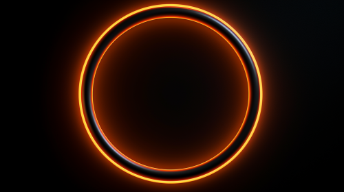 photo realistic, minimal copper colored neon circle on a black background, --ar 16:9