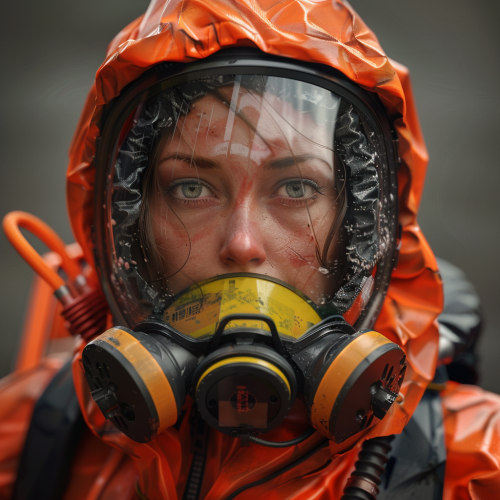 close up portrait highly advanced dystopian world, high tech hazmat gear