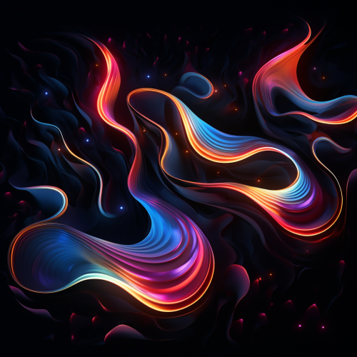 A bold graphic illustration on a black background, showcasing a vibrant splash of neon colors, dynamic shapes, and flowing lines. The colors contrast sharply against the dark background, creating a sense of movement and energy. Created Using: digital painting, neon glow effects, abstract expressionism, vibrant color palette, fluid dynamics, light diffusion, hd quality, vivid style --ar 2:3 --v 6.0