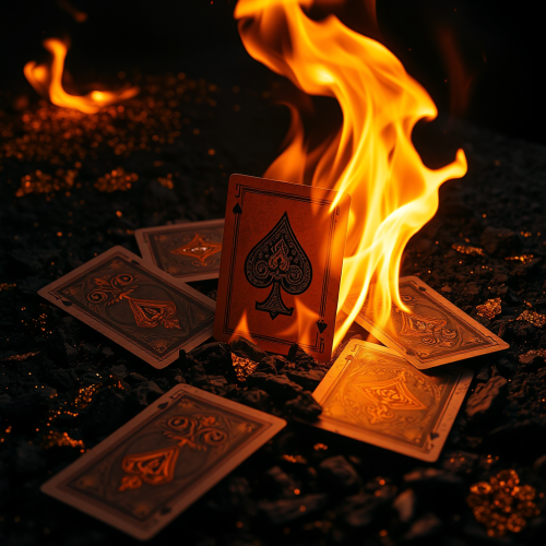 Playing cards fly out of the magic hat, playing card symbols through the air, magical atmosphere --style raw