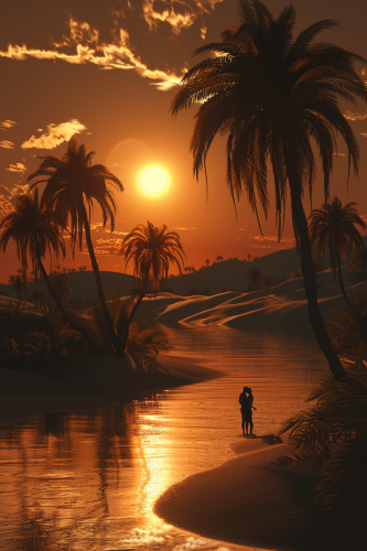 a selfie of a 21 year old African American man, with his Lebanese wife, and 4 year daughter. The daughter has green eyes. The wife looks like Nancy Ajram. The location is the desert of Dubai during the sunset. We can see the dunes in the background and a little oasis with water and with palm trees. The African American man is wearing sunglasses, and clear red baggy t shirt, and a white scarf covering his head, he also got dreadlocks, took from iPhone 16, in 2024 in the style of Alex Webb, candid::3 30mm lens, shot in 2024, candid, minimalism, moody, modern, cinematic realism, Eye Level Shot, shot with hasselblad 30mm, Kodak Ektar 100::1 --no black and white photography --ar 3:4 --style raw --stylize 0 --q 2
