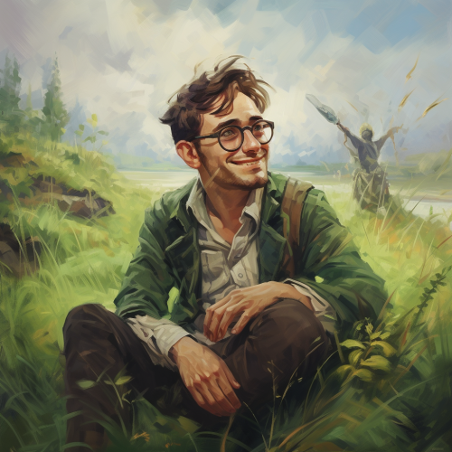 d&d fantasy painting, thin nerd soyjack guy. weak arms. Huge glasses. Cannot touch grass.