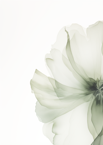 a watercolor print of a green flower on a white background, in the style of dark white and light gray, large-scale sculpture, trace monotone, delicate still-lifes, fujifilm natura 1600, dark green and light beige, organic --ar 91:128 --v 5.2 --s 4