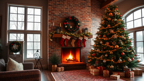 Showcase a farmhouse style electric fireplace that combines modern convenience with traditional aesthetics. The electric fireplace should mimic the look of real flames and perhaps include a classic wood mantle or a rustic stone surround. This type of fireplace is perfect for those who want the farmhouse feel without the need for real wood or extensive venting. The photograph should highlight the realistic features of the electric fireplace in a setting that emphasizes its integration into farmhouse decor. This image should be so lifelike and appealing that it encourages viewers to consider an electric fireplace for their own farmhouse-inspired home. Camera: DSLR - Canon EOS 5D Mark IV. Lens: Canon EF 24-70mm f/2.8L II USM. Composition: Wide shot, room-centered, horizontal orientation, balance between furniture and space. Film: Digital, high resolution, color profile sRGB. Camera settings: ISO 400, f/2.8, 1/60 sec. --ar 2:3 --v 6.1 --s 250