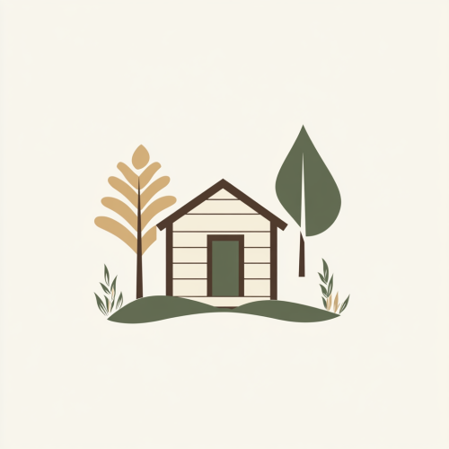 Create a professional and modern logo for an outdoor storage shed website. The logo should feature elements that suggest outdoor durability, storage solutions, and home garden aesthetics. The design should incorporate clean lines and a minimalist style, with neutral and natural colors like green, brown, or grey. The logo should convey reliability and convenience for outdoor spaces and feature an icon, such as a shed or a simplistic garden tool, combined with the company name (you can input your company name here). Ensure the font is easy to read and fits the overall outdoor theme.