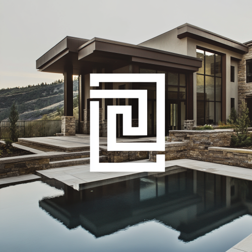 Create a sleek and sophisticated logo for 'Elite Constructors,' focusing on outdoor living, landscaping, and pool installations. The logo should integrate simple, refined shapes or symbols that represent outdoor craftsmanship, such as pavers, greenery, or water features. The design should be minimal yet impactful, with an emphasis on clean lines and balanced proportions to evoke professionalism and a high-end appeal.