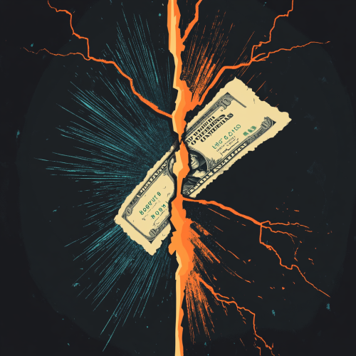 a graphic simple image depicting a receipt bill being split in two parts by a thuderbolt lightning, to represent a cool business cheap deal in the energy sector