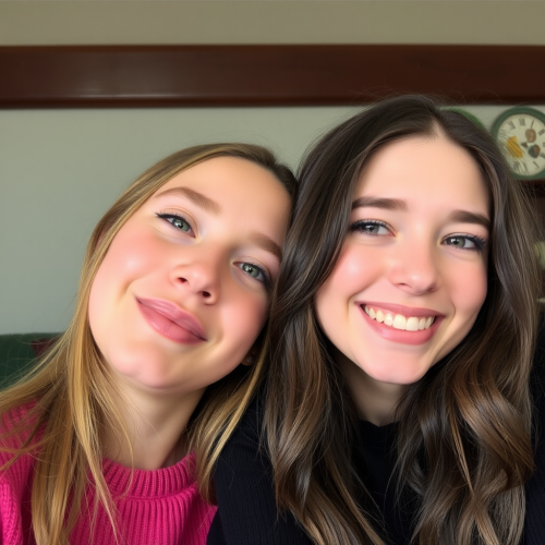 Very Realistic iPhone photo of a 25 year old lady who is getting married on her wedding day with her mom who is 60 years old. They are outside and both looking very happy smiling at the camera, the 60 year old mom is in a black dress and the 25 year old is in a white dress. --v 6.0 --ar 3:4