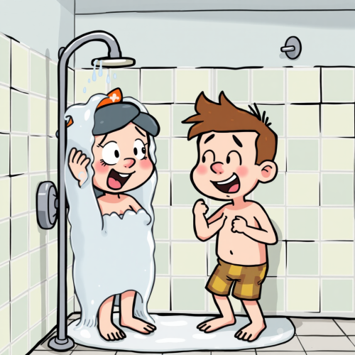 emotional realistic illustration, close up of a mother and 3 year old girl in front of the kindergarten, mom is crouching at her level and talking to her daughter, the girl is a bit upset and thoughtful, backlight