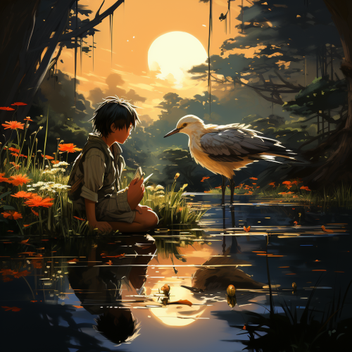 Illustration The Boy And The Heron Inspired 4k resolution sunny Aesthetic Anime Scenes with ghibli style human character --s 750