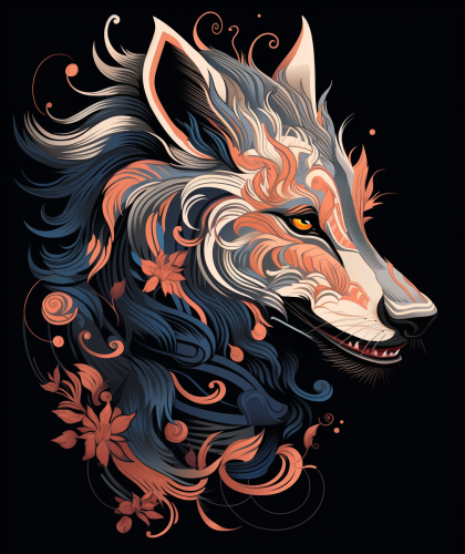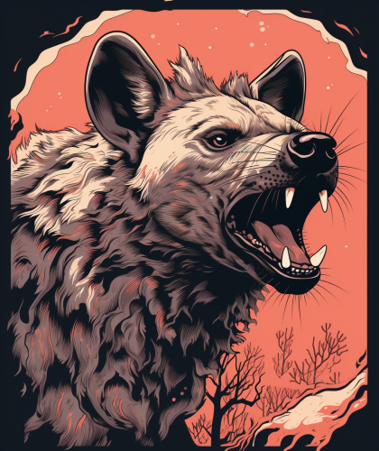 **artistic howling hyena profile , agressive face , howling , tat by wanda resene, in the style of dark silver and light pink, art nouveau-inspired illustrations, classic still life compositions, white and orange, neo-traditional japanese, close up, profile unique character design , hyena --ar 27:32