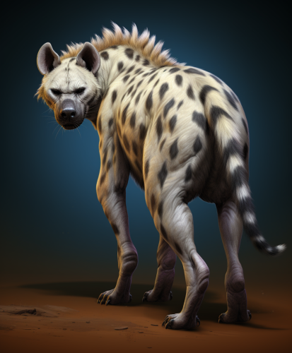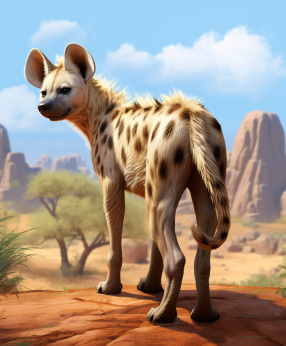 back view of a hyena, looking away, full body, disney bambi artstyle --ar 5:6