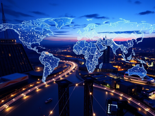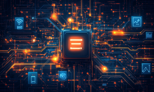 In the style of John Singer Sargent and Craig Mullins, an artistic illustration on IoT communication protocols, technological lines, techy, --aspect 5:3 --stylize 200 --no people