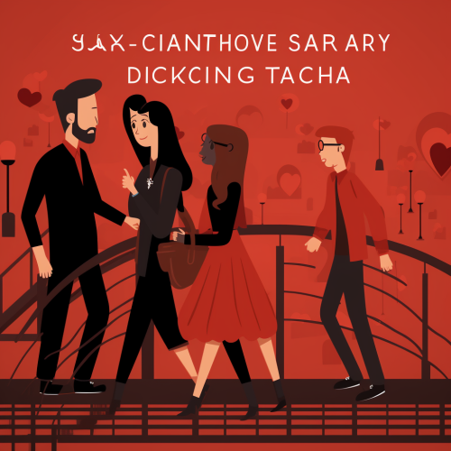 book cover for dating advice in red and black tones with in modern but cartoon style depicting people in dating scenarios
