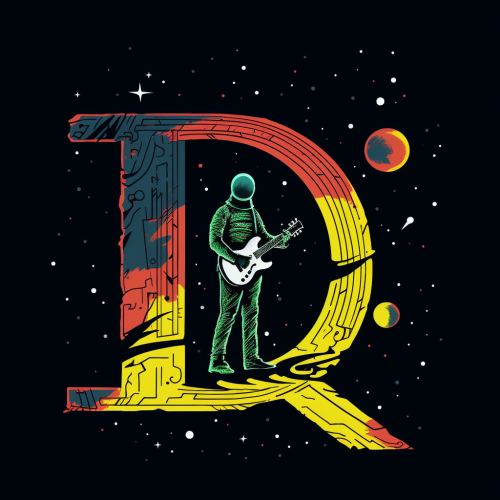 A letterform logo of letters D R D with a doctor tool and outerspace background, logo, simple, vector, Psychedelic Art --no photorealistic details