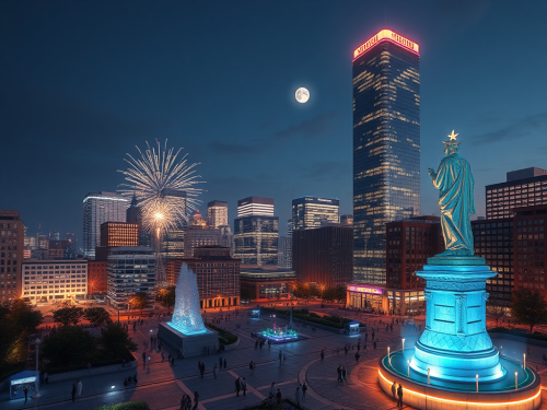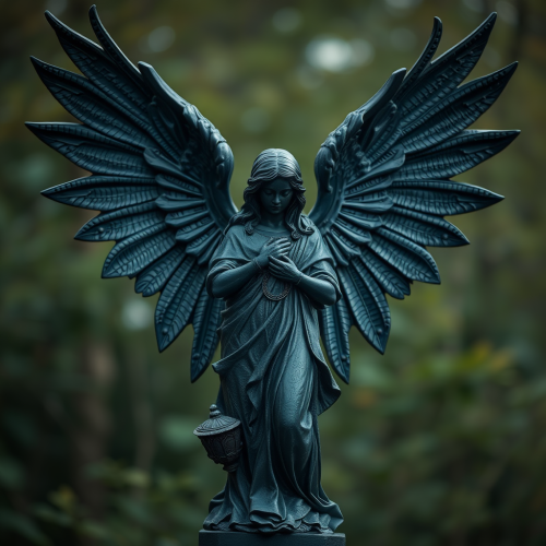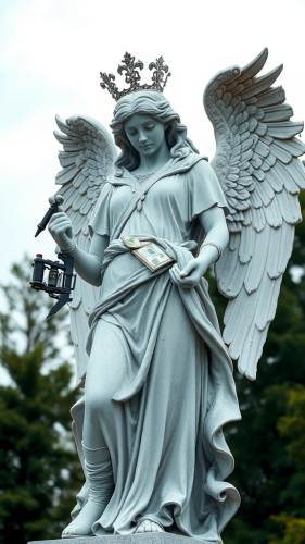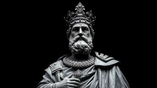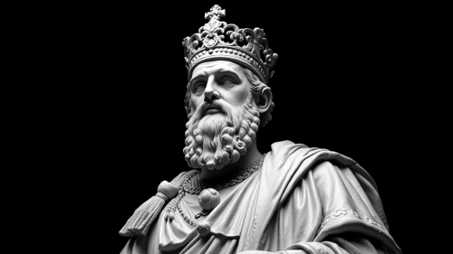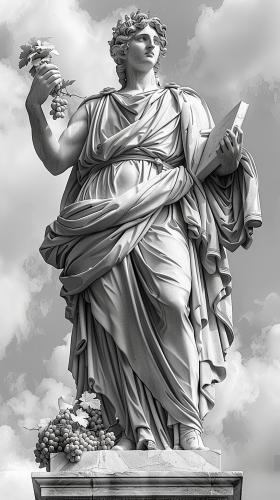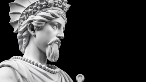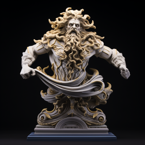 MAKE ME A STATUE OF A SYMMETRICAL GREEK GOD IN WHITE MARBLE AND GOLD WITH A BLACK BACKGROUND.
