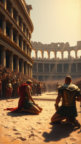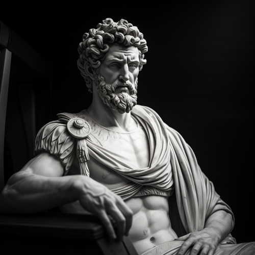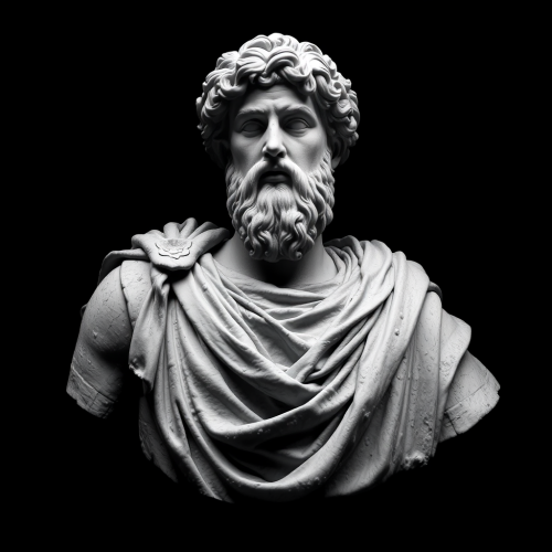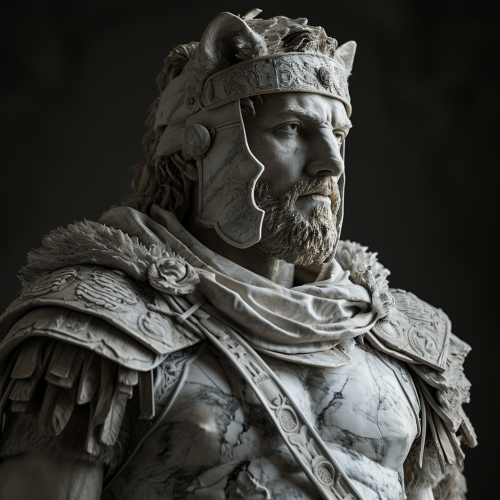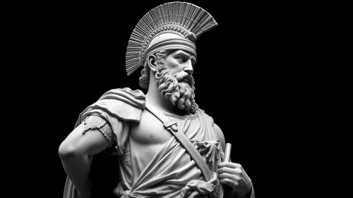 gladiator as portrayed by russell crowe as an ancient roman style marble statue, full body image, all marble texture, wearing roman armor and a wolf pelt --v 6.0 --s 250