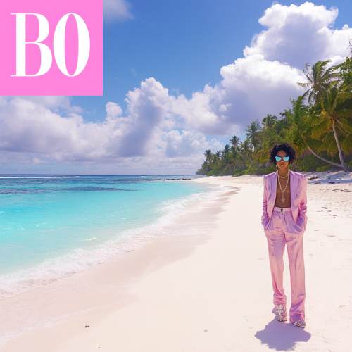 full length image, pink tones, beach popup givenchy, jewelry, minimalist style, hyper-realistic, shot by jamie hawkesworth, beach location by David burdeny --chaos 50 --s 250