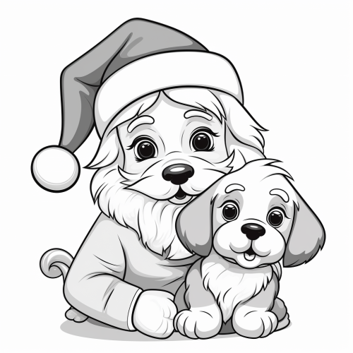 Coloring Page for kids, manga, cute dog with santa had, black and white, white background, clean line Art, fine line art HD Santa Claus