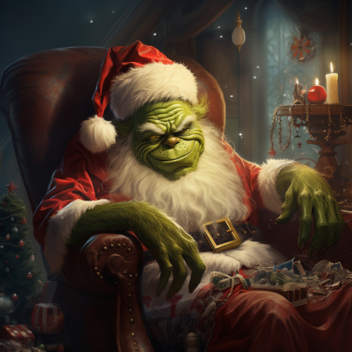 The Grinch smiling wildly in the style of neon lights, studio photography, lithograph, photo taken with provia, sharpen lens, chiaroscuro portraitures, sombre