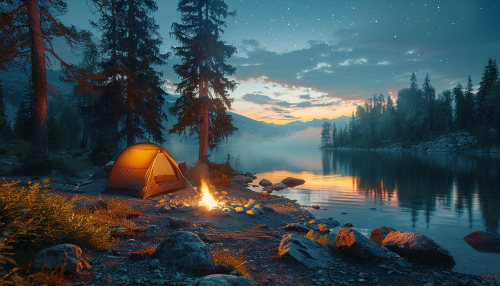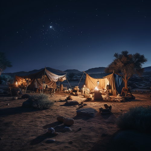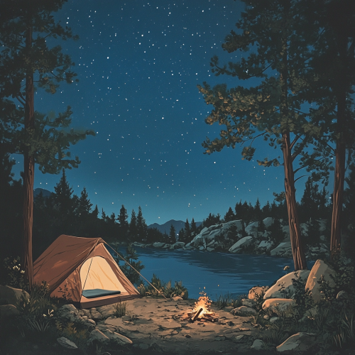 Serene Campsite with Rustic Tent Under Starlit Sky