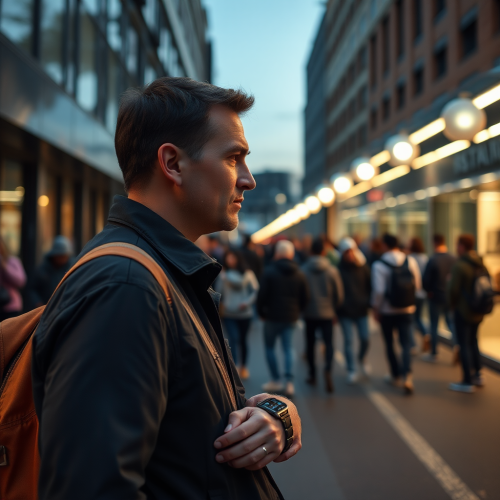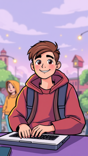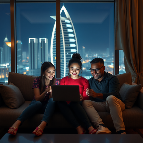 Ultra-realistic photo of a real estate agent character typing on a laptop at a sleek modern desk. The agent has a confident expression, wearing professional yet stylish attire, with subtle modern office decor and Dubai skyscrapers visible in the background. The scene uses realistic lighting, textures, and skin tones. Reflection of the glowing laptop screen on the agent’s glasses. Busy professional office environment, minimal but elegant background, high detail on character and laptop --v 5.1 --ar 1:1 --seed 999