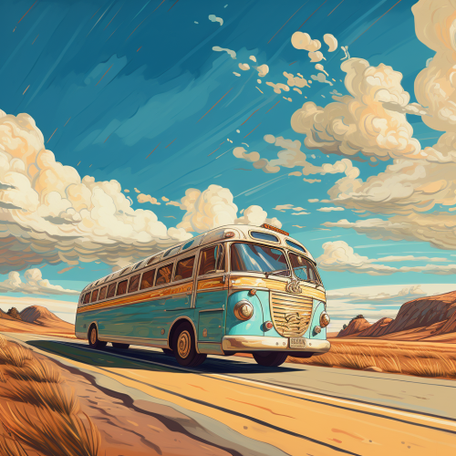 digital illustration::2 , school bus::3 Gray with teal stripes::6 , high details, high quality, high resolution, cartoon, flawless, stunning, vivid, eye catching, post processing::3 frames, canvas::-1 --ar 2:1 --v 5.1 --style raw
