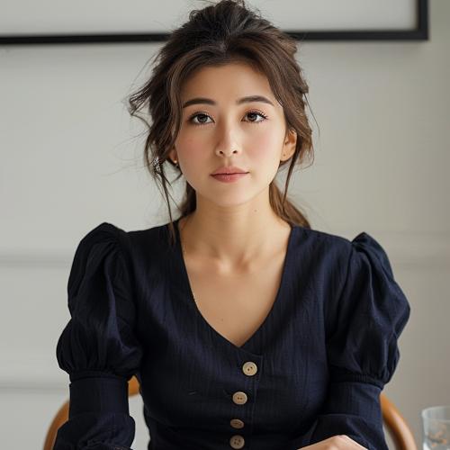 a korean woman wearing a large white bird skull mask, in the style of pop inspo, neil gaiman, Modern clothing in muted colors, dark beige and black, irving penn, animal figurines, tenebrism-inspired, avian-themed, Flat black background without decoration --ar 2:3 --style raw --stylize 750 --v 6.0
