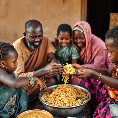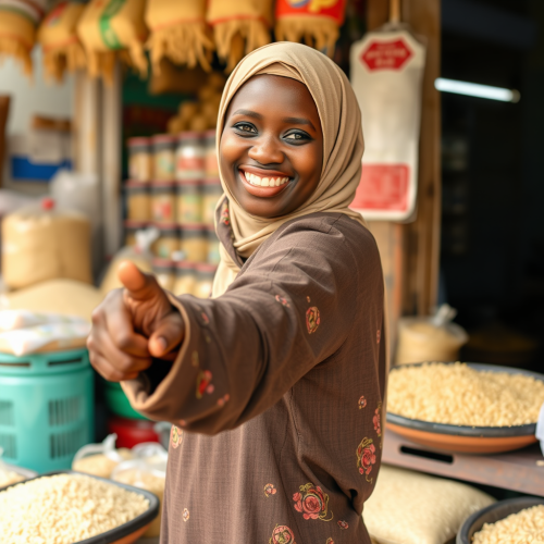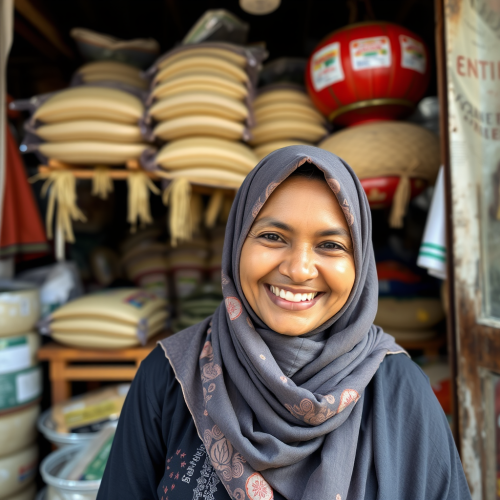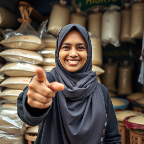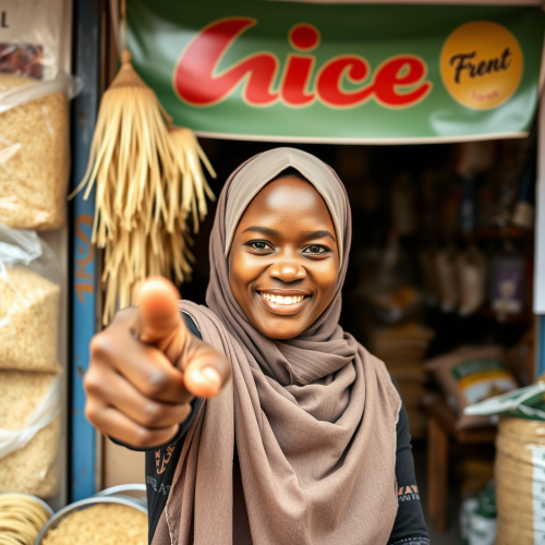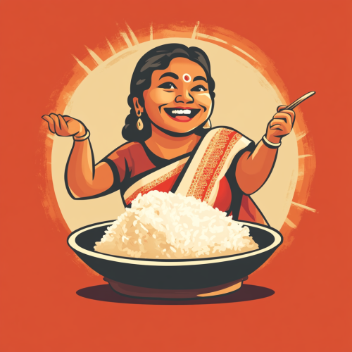 a flat design two color logo, a fat kind looking Sri Lankan woman in a saree smiling with a big plate of rice on her hand pointing towards camera, distorted