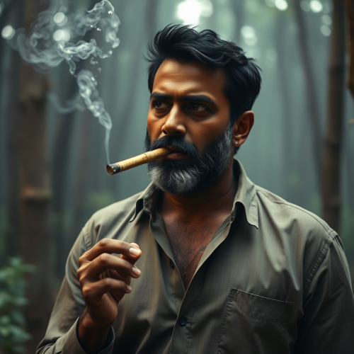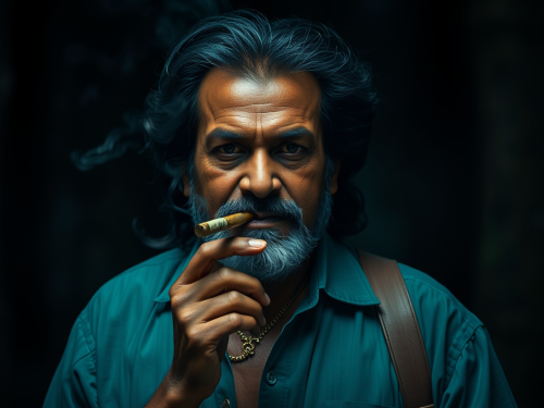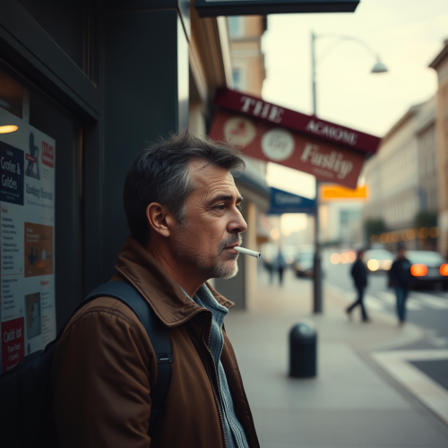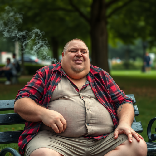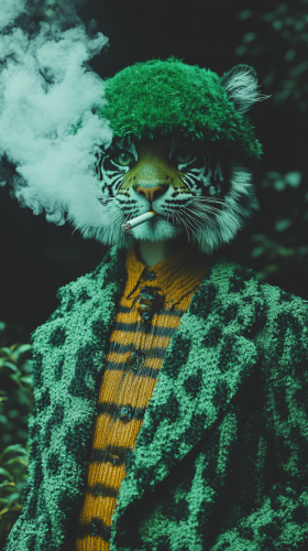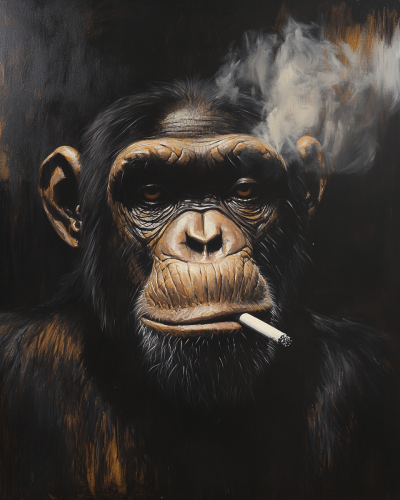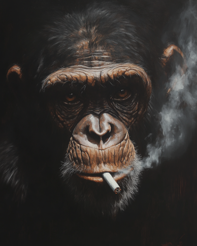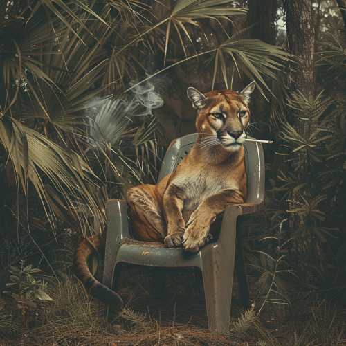old Florida cougar siting on a plastic chair, smoking a cigarette, looking at the camera