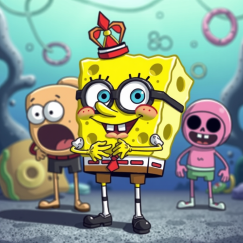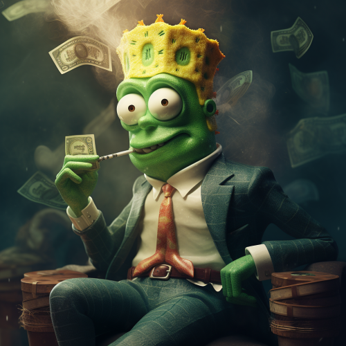 gangster spongebob in a green suit smoking a cigar with money poking out of his suit