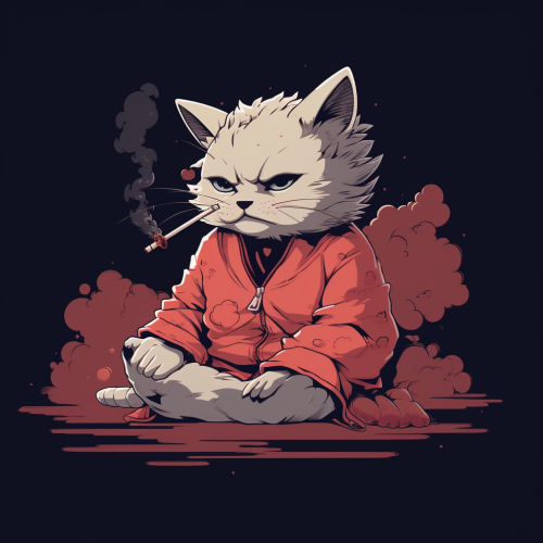 a cute anime cat, in the style of an old 80s low budget japanese animation, smoking a cigarette