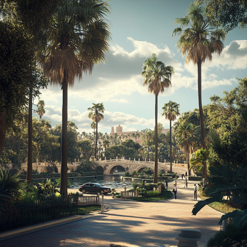 Pintura impressionista pastel e grafite de Frank weston benson numa cena em Nova York em um dia ensolarado, pessoas andando nas calçadas num parque ao lado da estacao de trem. Tinta encáustica a óleo, azul e neon fluo amarelo e verde e linogravura turquesa elétrica. árvores secas com galhos longos e secos. sombras das pessoas no chão são compridas