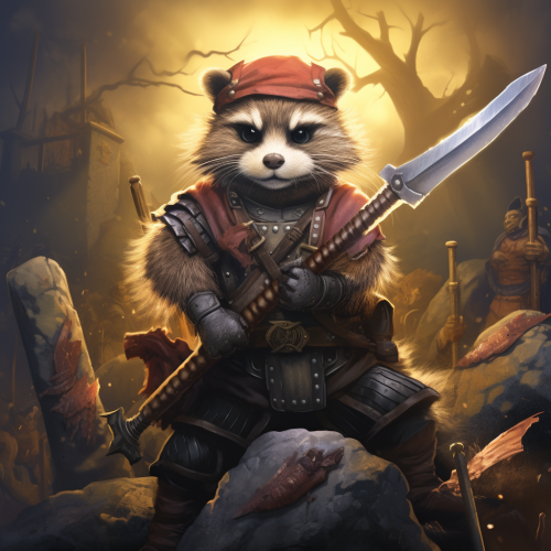 cover art for an original 80s nintendo game starring a warrior polecat set in medieval times. holding an axe
