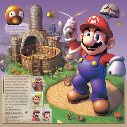 Page from the game manual for "Adventure Guild Manager 64", explaining adventurers, Super Mario help bubble, in the style of a Nintendo 64 game manual