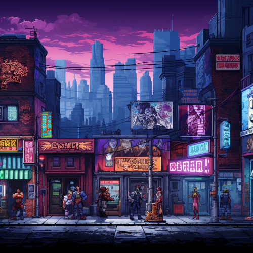 16 bit game, pixelart, super nintendo style, beat em up, manhattan cyberpunks