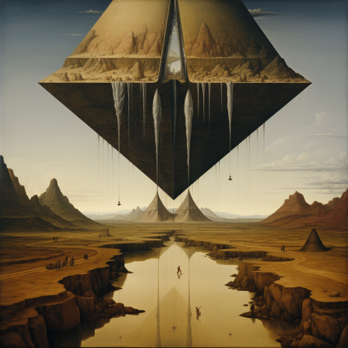 Surreal Cosmic Sky Over Metallic Desert Landscape