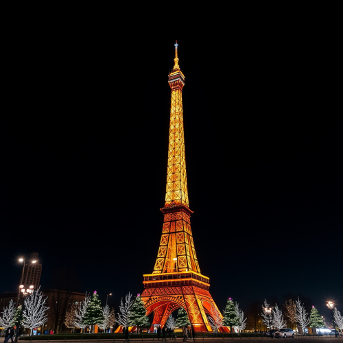 Asian yurt next to the Eiffel Tower at the Christmas market in Paris --q 0.5 --style raw